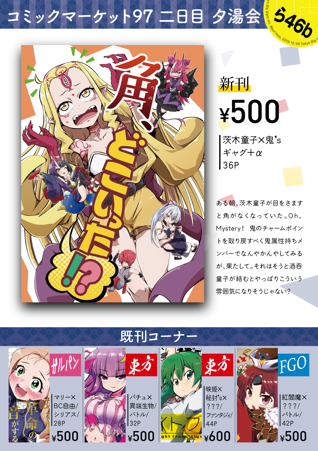 という次第でC97二日目【日曜日 西ら46b】にて、スペースをいただきました。